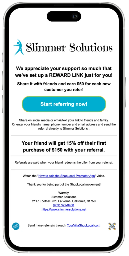++ ShopLocal adds up to 10% processing fee to Referral Reward payout that is charged when the Referral Reward is authorized.